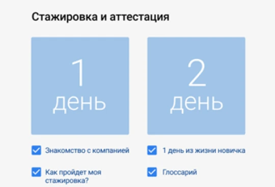 Портал помог автоматизировать процесс обучения и адаптации новичков: в личном кабинете есть план стажировки, электронные материалы и видеоуроки для изучения, онлайн-тестирование для проверки знаний. Каждый день новый сотрудник может оценить свои успехи в обучении по прогресс-бару и выполнить несколько «неформальных» заданий.